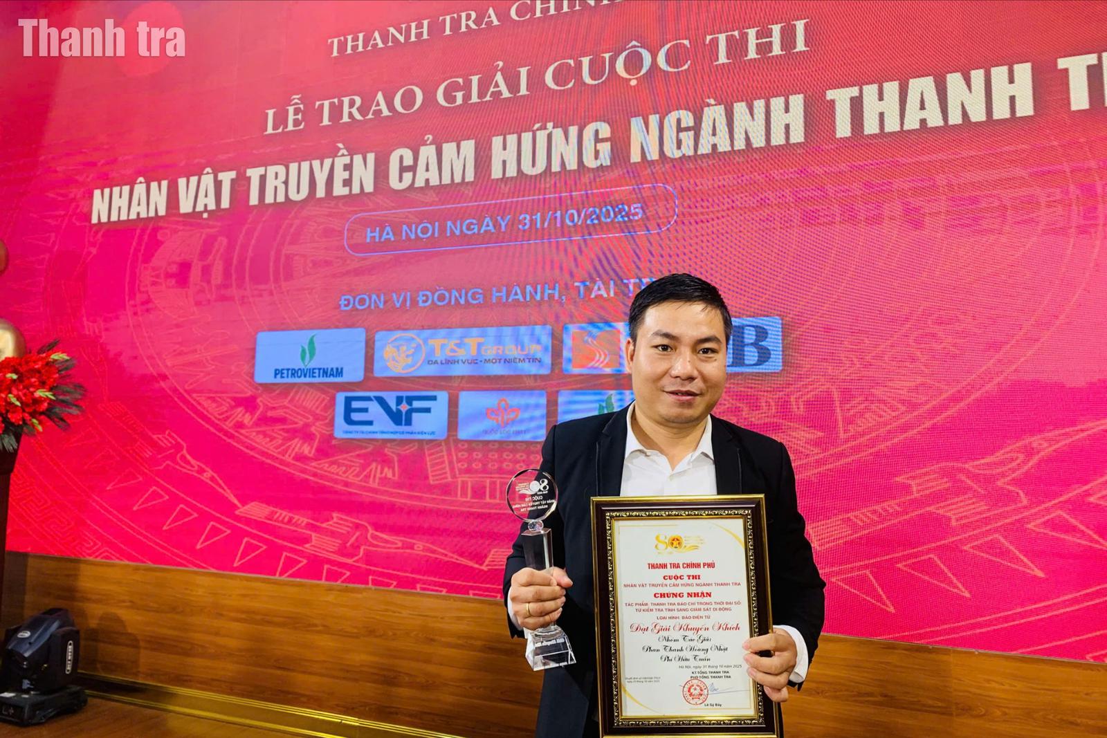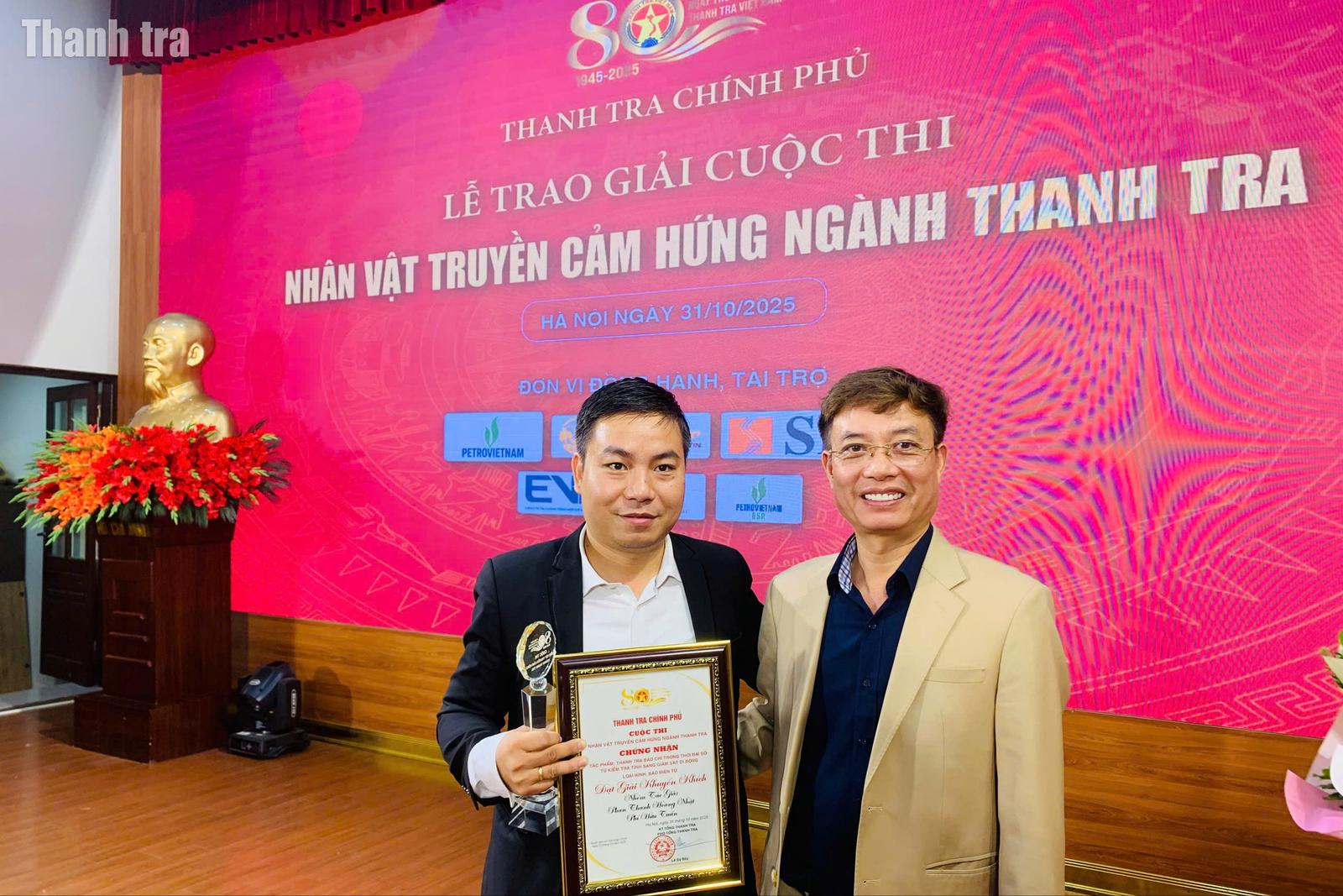 Tác phẩm “Thanh tra báo chí trong thời đại số: Từ kiểm tra tĩnh sang giám sát động”, thể loại báo điện tử của nhóm tác giả Phan Thanh Hoàng Nhật và Phí Hữu Tuấn thuộc Hội Nhà báo Việt Nam là một trong những tác phẩm đạt giải trong Cuộc thi “Nhân vật truyền cảm hứng ngành Thanh tra” do Thanh tra Chính phủ tổ chức.