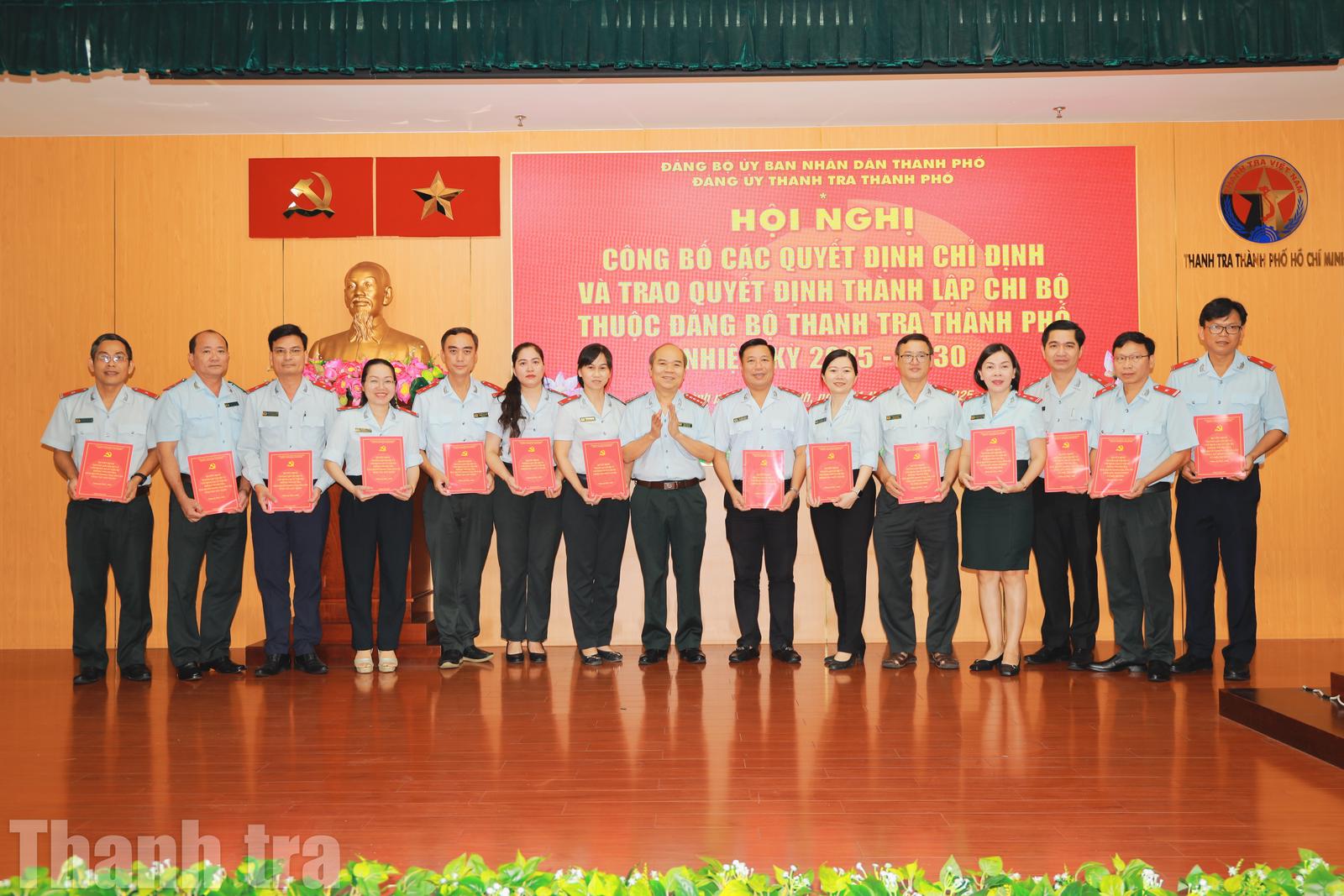 Bí thư Đảng bộ Thanh tra Thành phố Trần Văn Bảy (giữa trao các Quyết định chỉ định Bí thư Chi bộ, trong đó anh Mai Quốc Khánh là Ủy viên ban Chấp hành đảng bộ, Bí thư Chi bộ