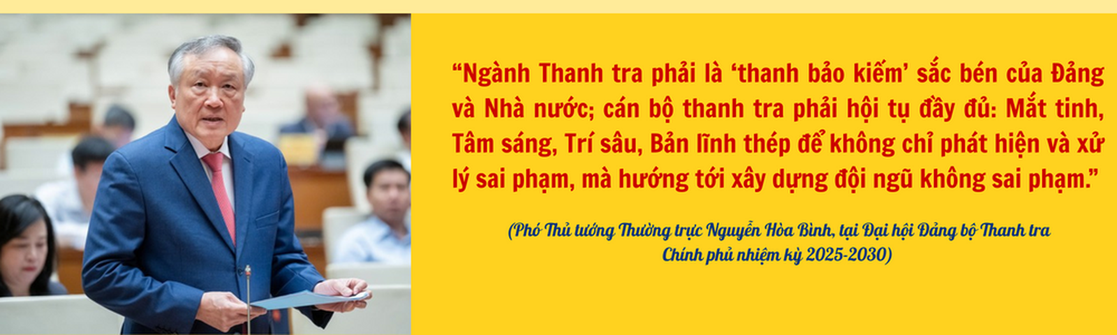 Trích lời của Phó Thủ tướng Thường trực Nguyễn Hòa Bình tại Đại hội Đảng bộ Thanh tra Chính phủ nhiệm kỳ 2025 - 2030: “Ngành Thanh tra phải là ‘thanh bảo kiếm’ sắc bén của Đảng và Nhà nước; cán bộ thanh tra phải hội tụ đầy đủ: Mắt tinh, Tâm sáng, Trí sâu, Bản lĩnh thép để không chỉ phát hiện và xử lý sai phạm, mà hướng tới xây dựng đội ngũ không sai phạm” - đây chính là kim chỉ nam để toàn ngành Thanh tra nói chung, Thanh tra tỉnh Hà Tĩnh nói riêng tiếp tục rèn luyện, phấn đấu, giữ vững kỷ luật, kỷ cương, nâng cao hiệu lực, hiệu quả trong công tác, góp phần xây dựng nền hành chính liêm chính, minh bạch, vì Nhân dân phục vụ.