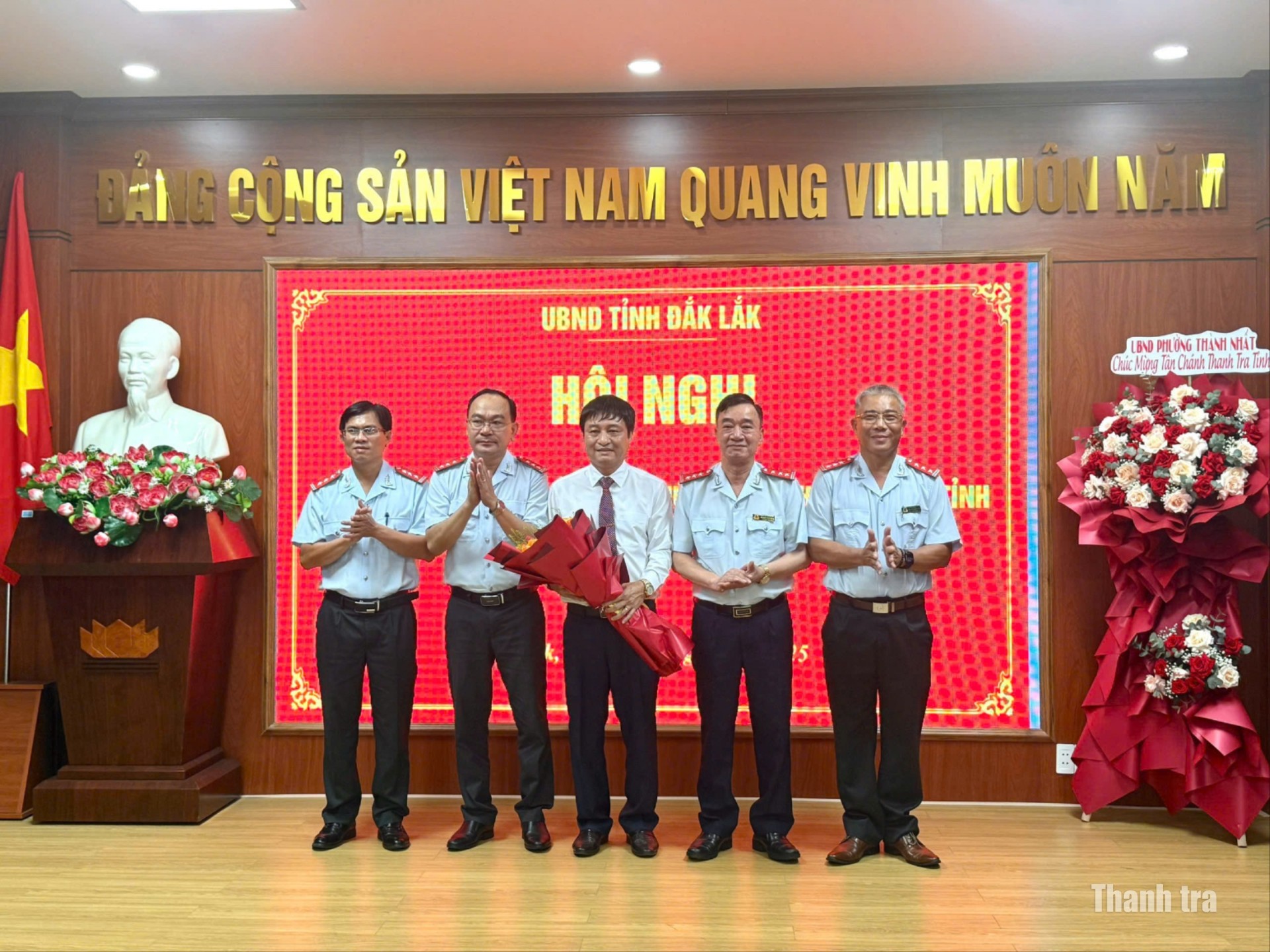 Tập thể lãnh đạo thanh tra tỉnh chúc mừng tân Chánh Thanh tra tỉnh Đắk Lắk Hồ Duy Thành nhận nhiệm vụ từ tháng 7/2025. Ảnh: NG
