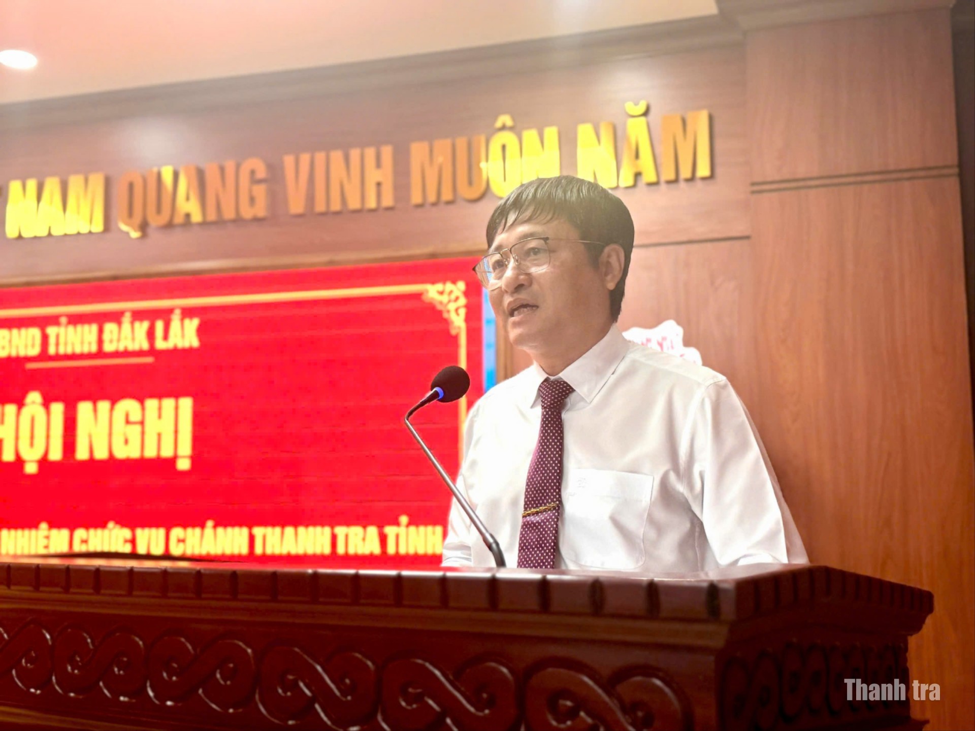 - Ông Hồ Duy Thành: Trước hết, tôi xin gửi lời chúc mừng đến toàn thể cán bộ, công chức, người lao động ngành Thanh tra cả nước, đặc biệt là anh chị em đang công tác tại Thanh tra tỉnh Đắk Lắk. 80 năm qua là chặng đường đầy gian nan nhưng cũng vô cùng tự hào, ghi dấu trí tuệ, bản lĩnh và sự kiên cường của biết bao thế hệ. Dù trong kháng chiến hay trong xây dựng đất nước, lực lượng thanh tra luôn giữ vững phẩm chất trung thực, dũng cảm, dám va chạm, nói thẳng, làm đúng, bảo vệ kỷ cương phép nước và sự trong sạch của bộ máy công quyền.
