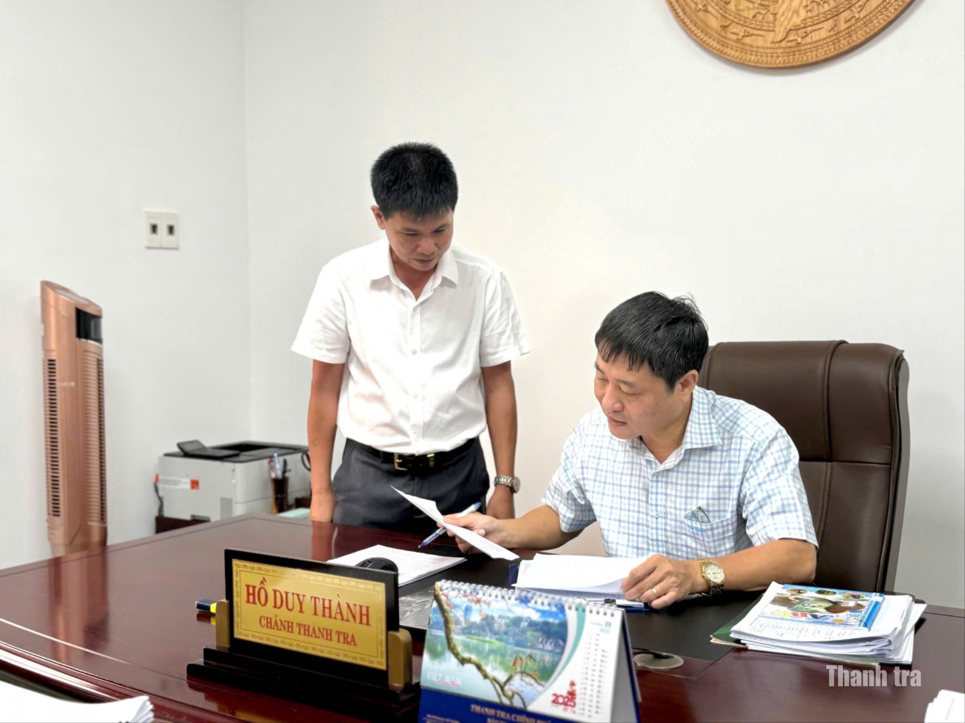 Phóng viên Báo Thanh Tra có cuộc trao đổi với ông Hồ Duy Thành (bìa phải) - Chánh Thanh tra tỉnh Đắk Lắk, về tầm nhìn và khát vọng xây dựng ngành Thanh tra minh bạch, công tâm và gần dân hơn, với thước đo cao nhất là "Công bằng và niềm tin của Nhân dân". Ảnh: NG