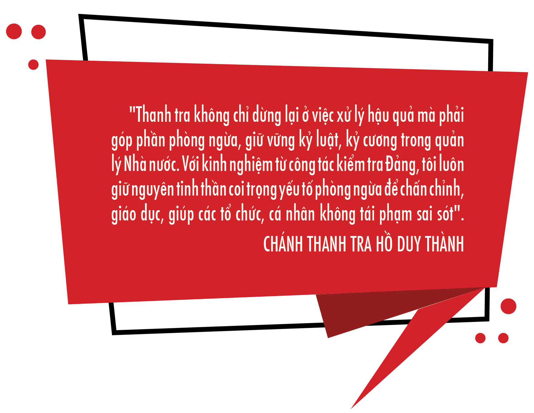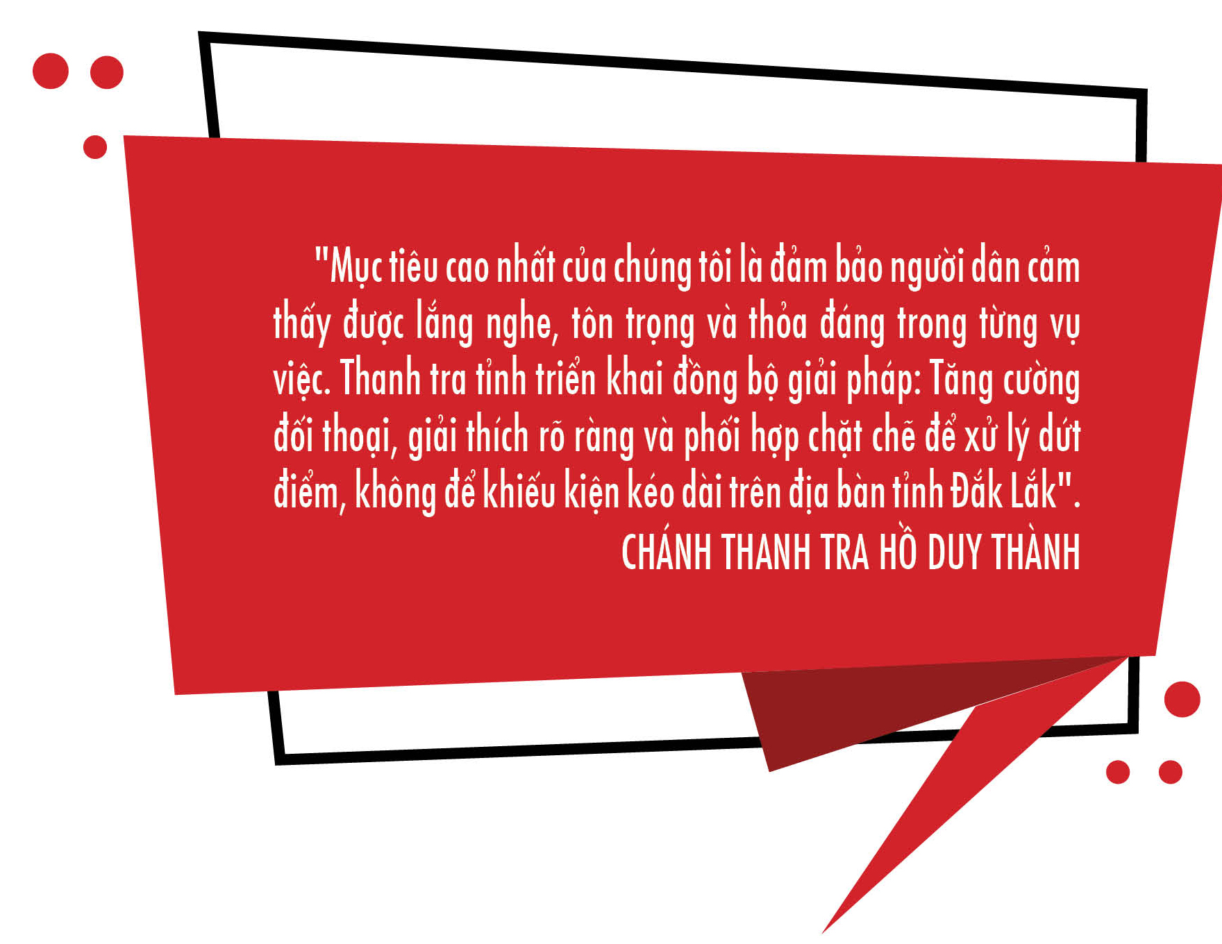 Dấu ấn mà tôi mong muốn để lại không phải là thành tựu cá nhân, mà là một nền Thanh tra tỉnh vững mạnh, đáp ứng được yêu cầu của thời kỳ mới, tạo niềm tin cho Nhân dân và để thế hệ sau có thể tiếp tục kế thừa, phát triển. Tôi tin rằng, với sự đồng lòng, bản lĩnh và khát vọng cống hiến, chúng ta sẽ làm được điều đó.