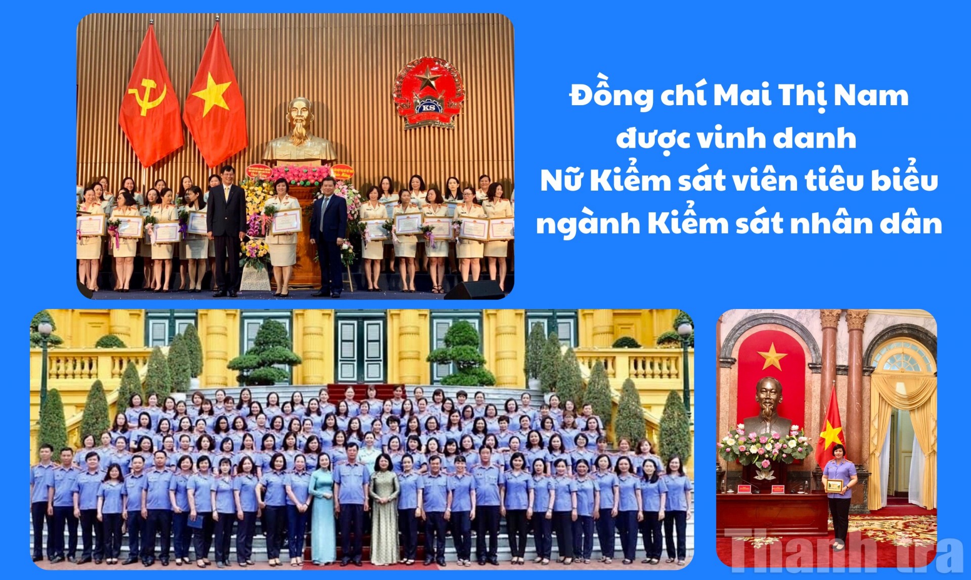 Với những nỗ lực ấy, Chánh Thanh tra Mai Thị Nam luôn được lãnh đạo VKSND Tối cao tin tưởng giao nhiều nhiệm vụ quan trọng. Quá trình công tác của bà được ghi nhận bằng nhiều hình thức khen thưởng của Nhà nước, của ngành và các tổ chức chính trị - xã hội. Đó không chỉ là sự khích lệ cho cá nhân, mà còn là hình ảnh động lực để tập thể đơn vị tiếp tục cố gắng, hoàn thành tốt xuất sắc nhiệm vụ.