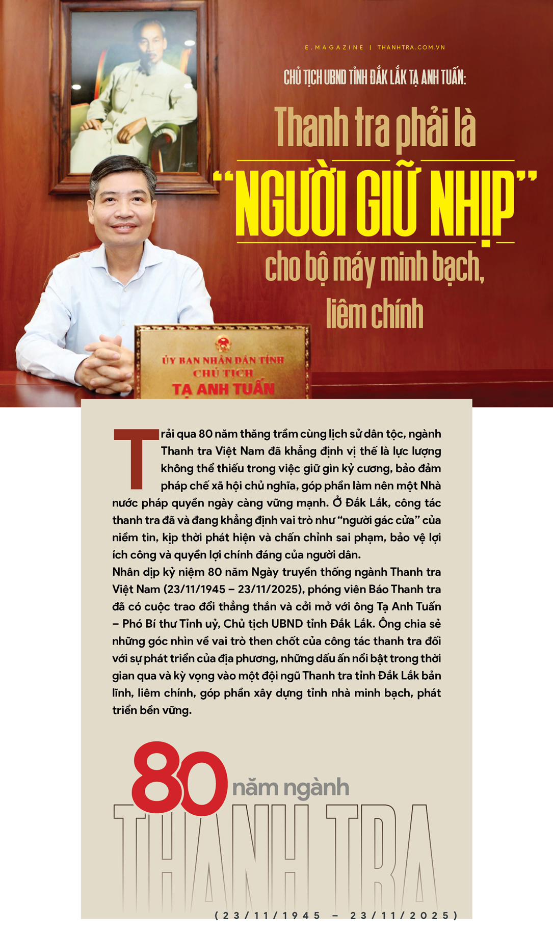 Qua cuộc trò chuyện với Chủ tịch UBND tỉnh Đắk Lắk Tạ Anh Tuấn, có thể thấy rõ vai trò toàn diện của ngành Thanh tra: Không chỉ là công cụ xử lý sai phạm, mà còn là cơ chế phòng ngừa, là “lá chắn” bảo vệ niềm tin và giữ cho bộ máy vận hành minh bạch, ổn định. Trong bối cảnh cải cách hành chính, chính phủ số và hội nhập sâu rộng, Thanh tra càng cần đổi mới mạnh mẽ, ứng dụng công nghệ, minh bạch hóa quy trình để vừa giám sát chặt chẽ vừa đồng hành cùng phát triển.