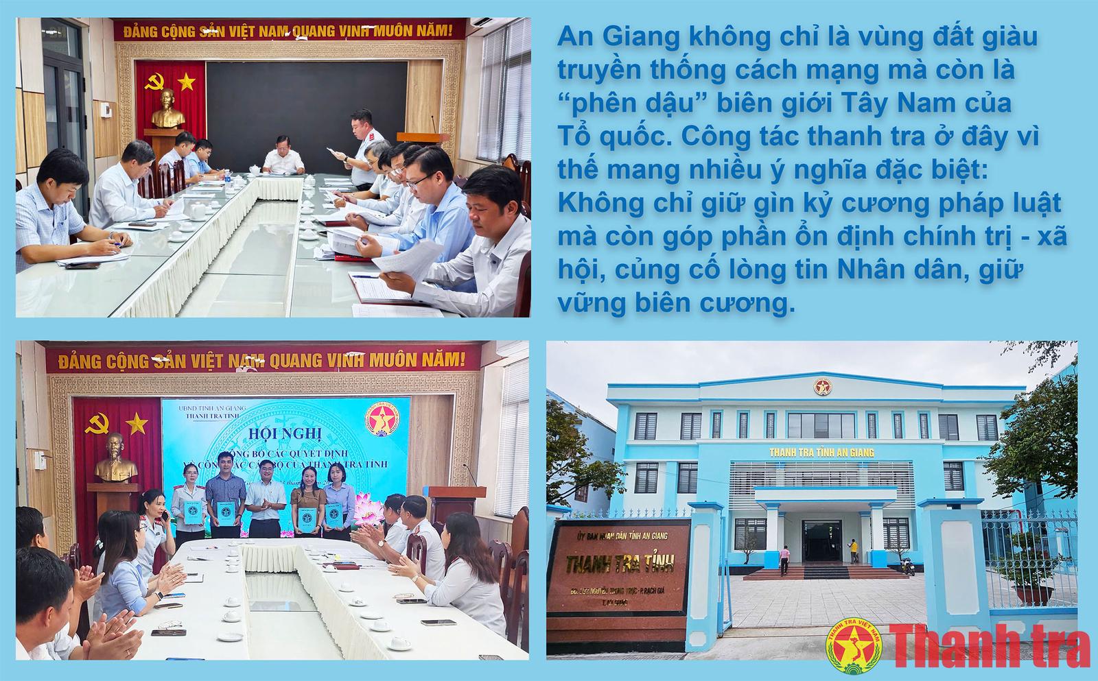 An Giang không chỉ là vùng đất giàu truyền thống cách mạng mà còn là “phên dậu” biên giới Tây Nam của Tổ quốc. Công tác thanh tra ở đây vì thế mang nhiều ý nghĩa đặc biệt: Không chỉ giữ gìn kỷ cương pháp luật mà còn góp phần ổn định chính trị - xã hội, củng cố lòng tin Nhân dân, giữ vững biên cương.