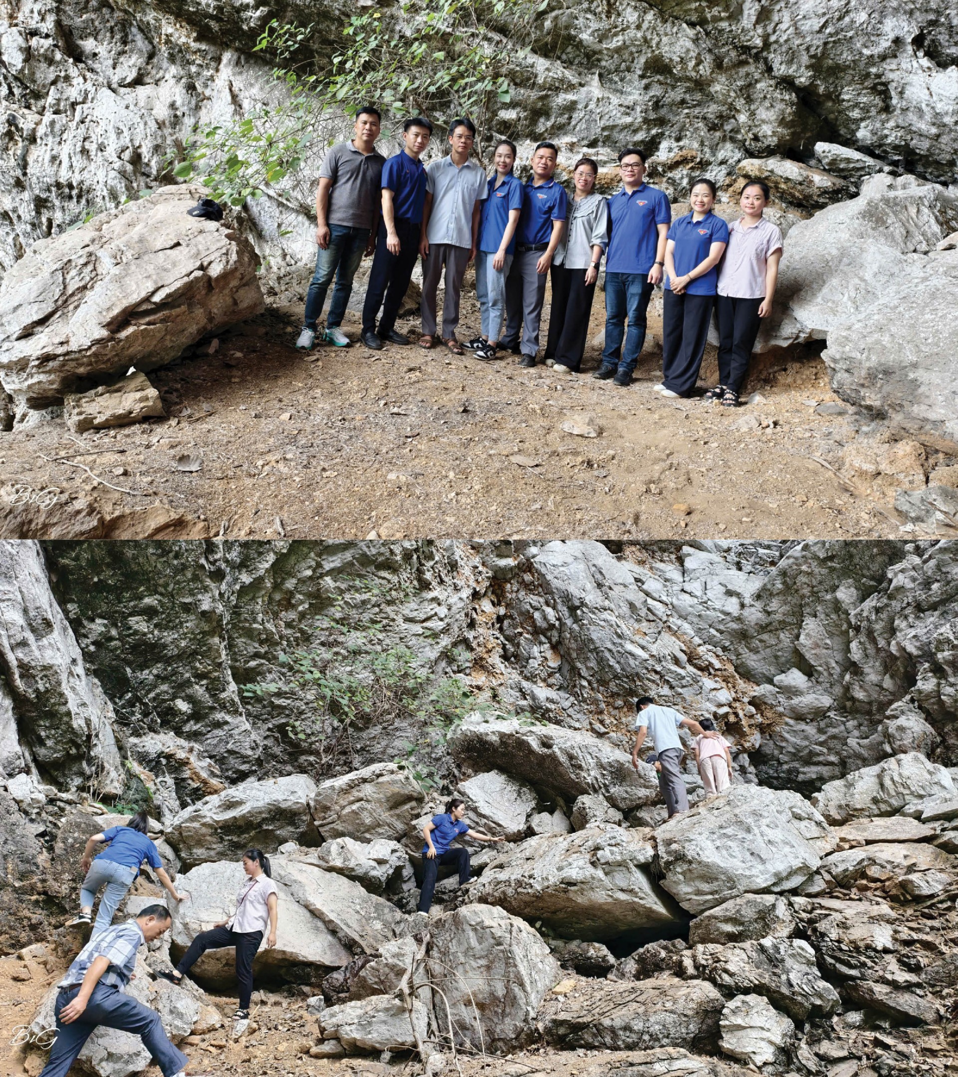 Thế hệ trẻ Thanh tra tỉnh Cao Bằng cùng nhau trở lại hang đá ôn thi năm xưa của đàn anh Đinh Văn Vụ với nguồn cảm hứng bất tận cho hành trình học tập và cống hiến. Ảnh: Phi Thu