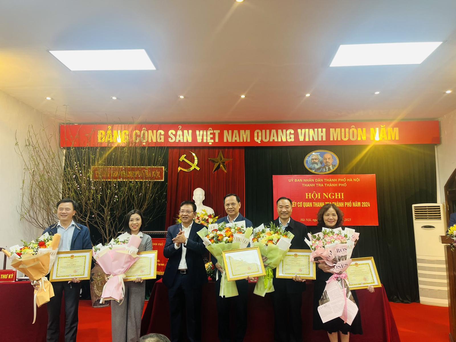 Đồng chí Phan Hữu Tùng (ở giữa) được nhận Bằng khen của Chủ tịch UBND Thành phố năm 2024. Ảnh: TV