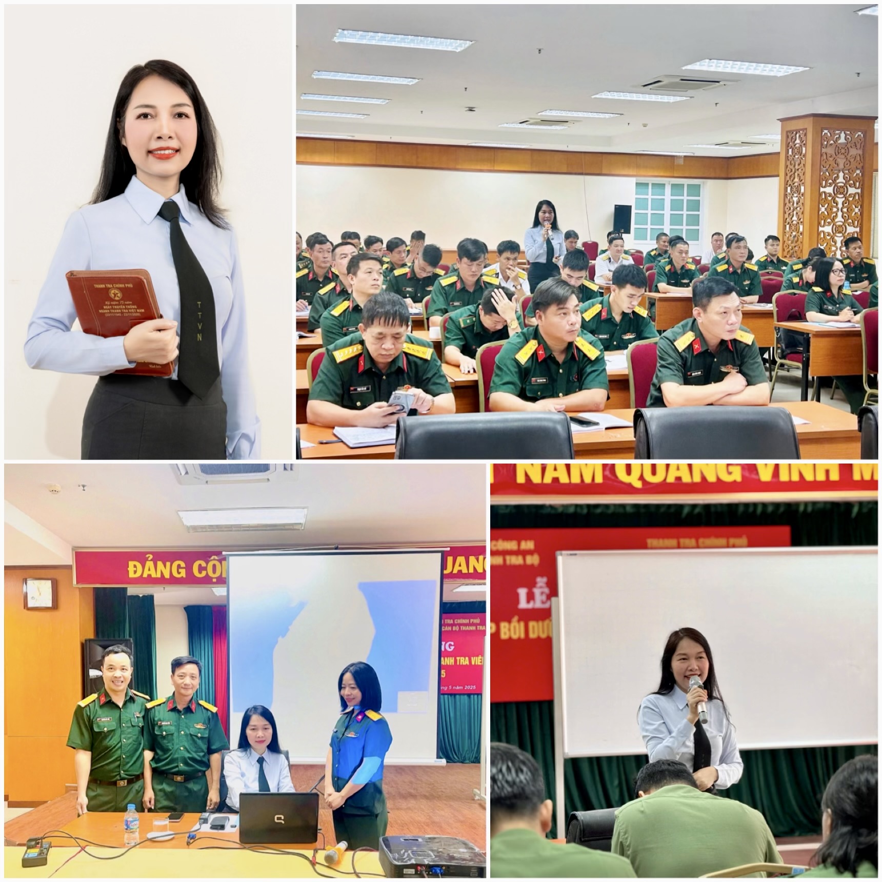 Chị Thu tham gia giảng dạy các lớp bồi dưỡng nghiệp vụ thanh tra thuộc lực lượng Công an Nhân dân. Ảnh do chị Thu chia sẻ