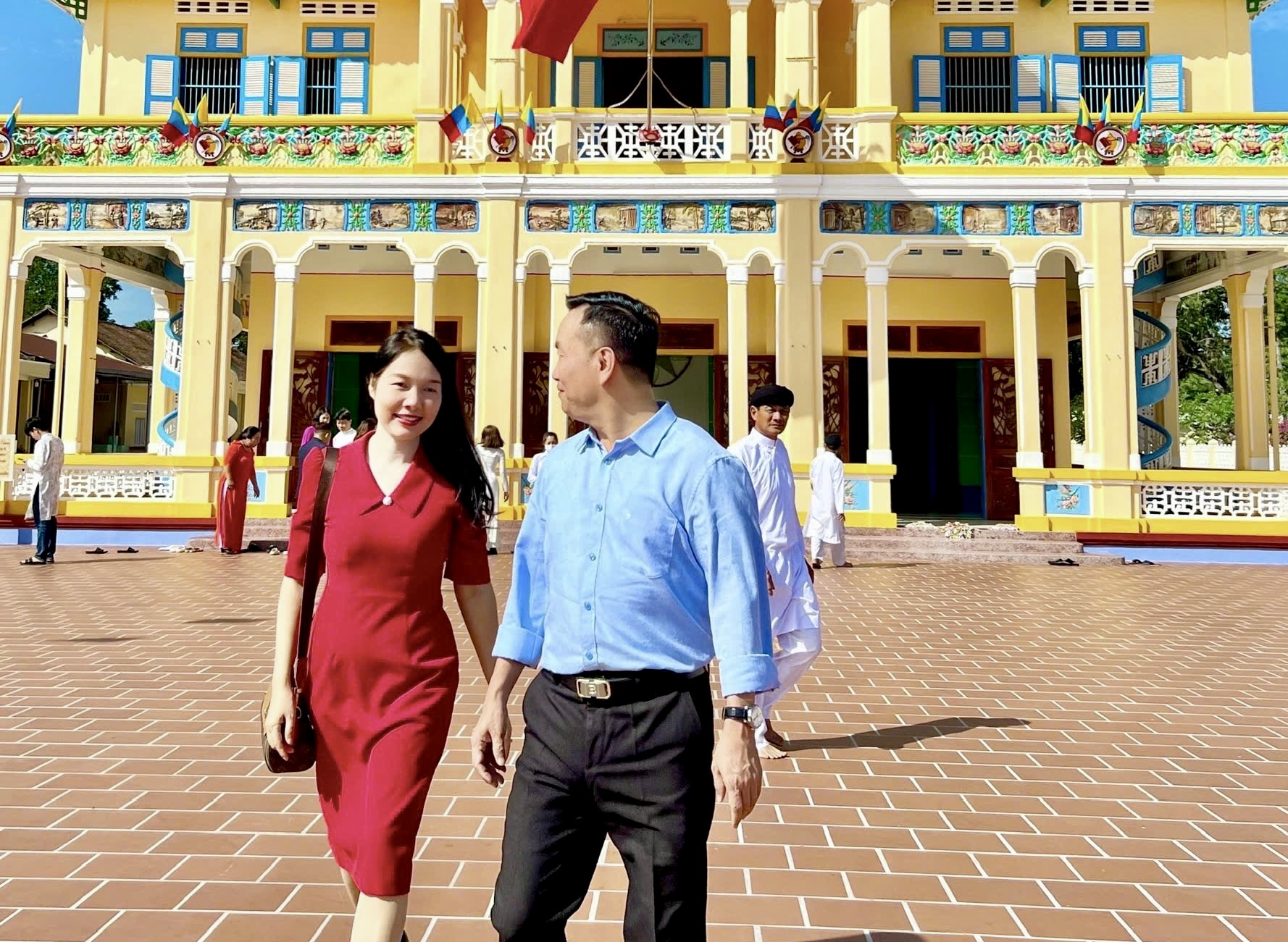 Chị Thu dành thời gian mỗi dịp lễ, Tết đi du lịch cùng gia đình, ảnh chị Thu cùng chồng. Ảnh do NVCC.