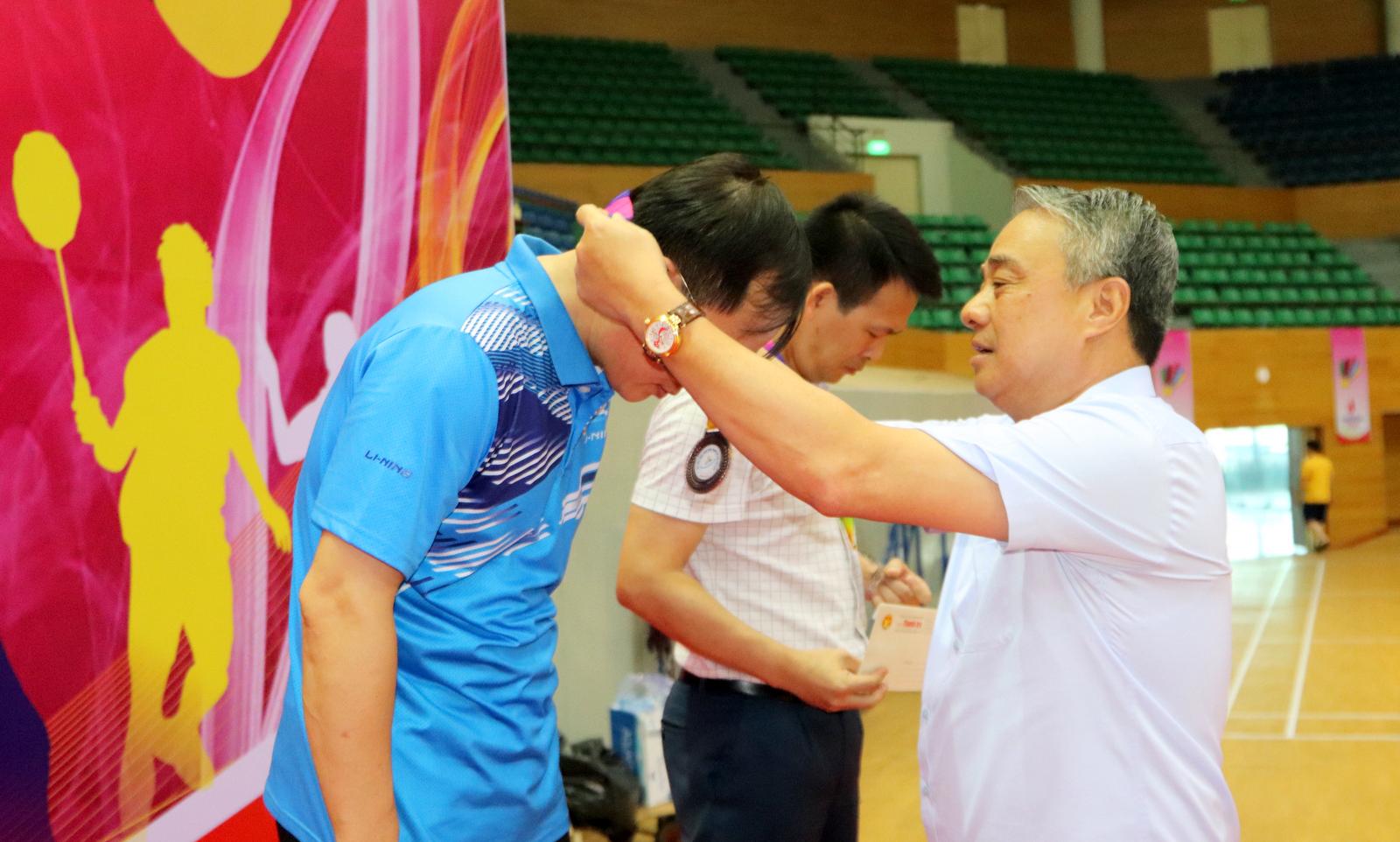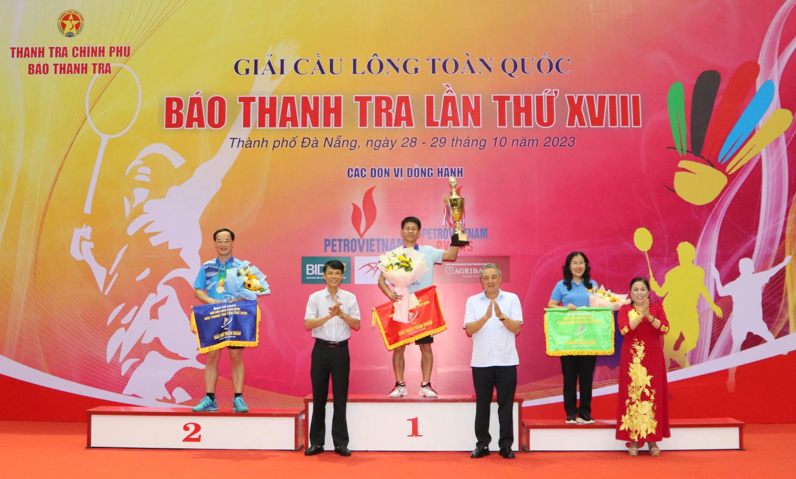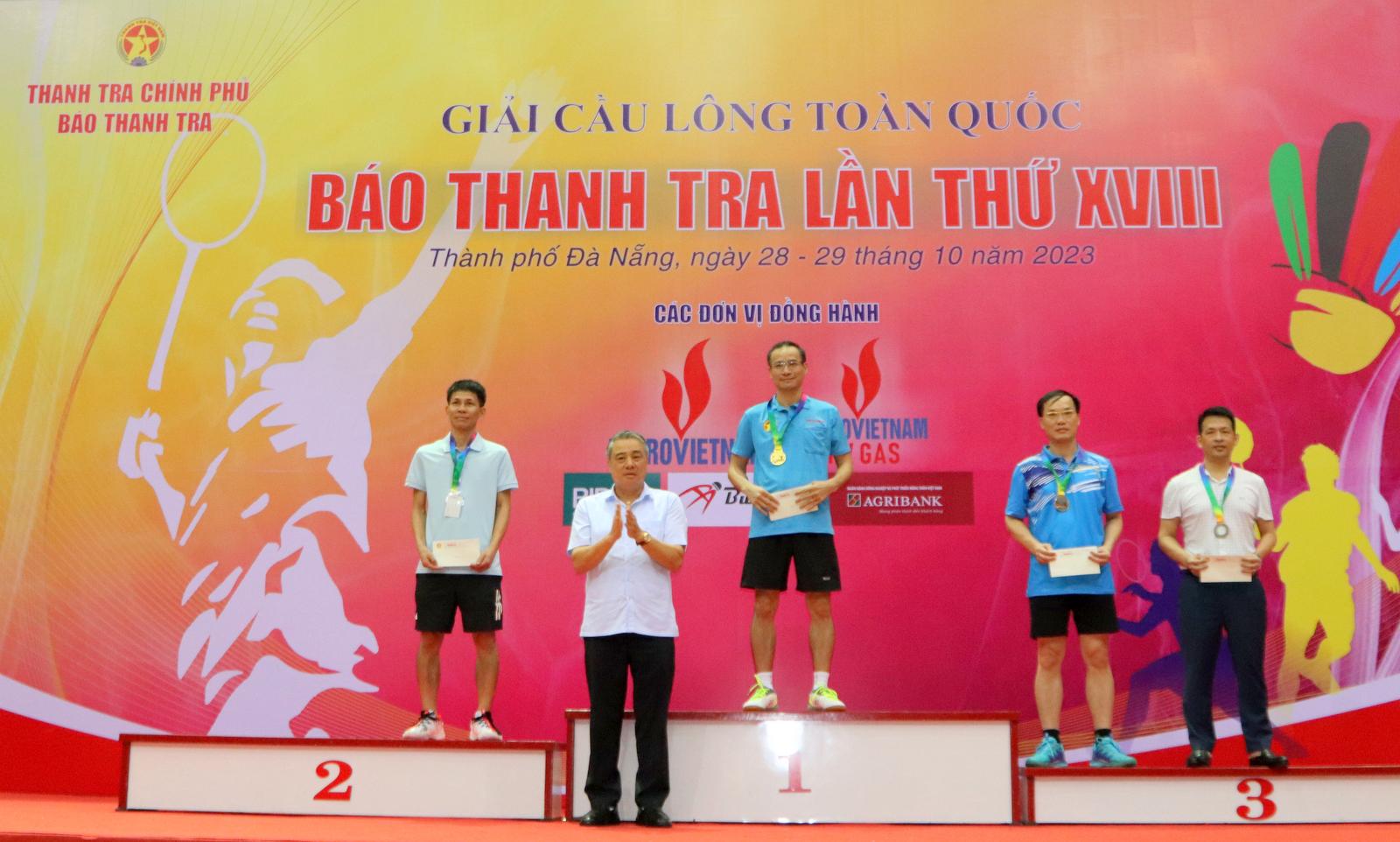 Chánh Văn phòng, Chủ tịch Công đoàn Thanh tra Chính phủ Nguyễn Mạnh Hường trao giải cho các VĐV ở nội dung thi đấu đơn nam lãnh đạo.